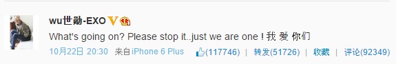 でもどうやらこの分享图片はウェイボにテキストなしで写真のみの投稿をした時に自動的につくみたい。(自分でも写真のみポストして試してみた)セフンちゃんが書いたものだとずっと思っていたよ‥セフンちぁ。・゚(゚⊃ω⊂゚)゚・。ピーってなる前に気づけてよかった‥(若干手遅れ)
