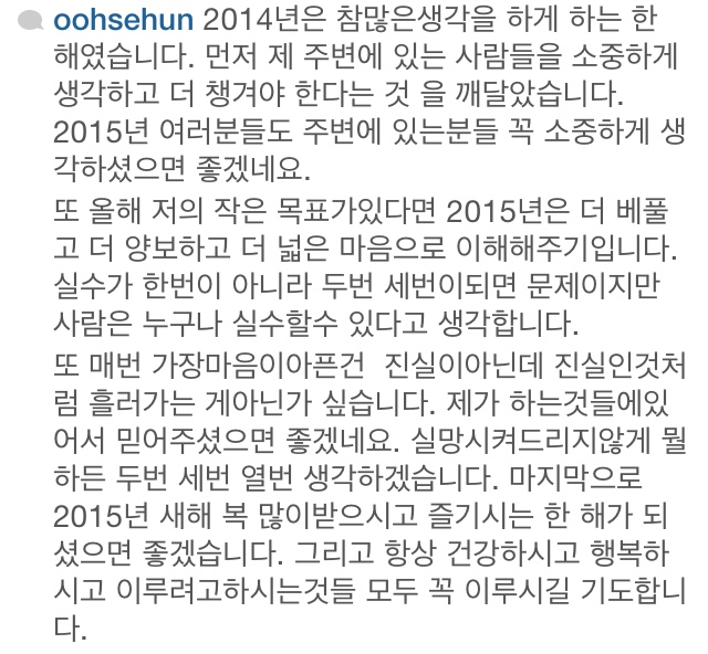 うん、まあでも。あなたがウェイボ始めたこともインスタ更新することも、喜ばしいと歓迎する子の方が多い、楽しんで^^最後に残るものは写真だと、知っているセフンちゃんはとっても聡いよ。